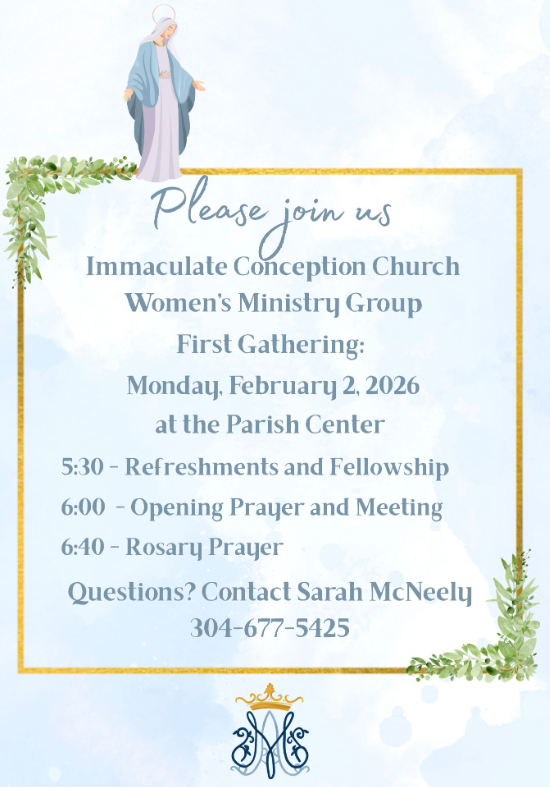Welcome to Immaculate Conception Parish, a Roman Catholic Church nestled in the beautiful mountains of Clarksburg, West Virginia. We hope that our website provides you with the information you need to nurture and support your faith here in the parish and beyond.