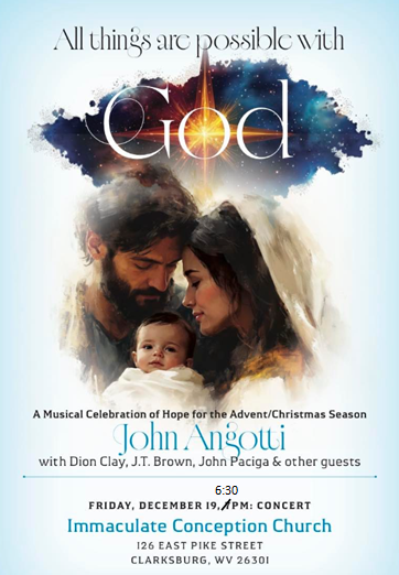 Welcome to Immaculate Conception Parish, a Roman Catholic Church nestled in the beautiful mountains of Clarksburg, West Virginia. We hope that our website provides you with the information you need to nurture and support your faith here in the parish and beyond.